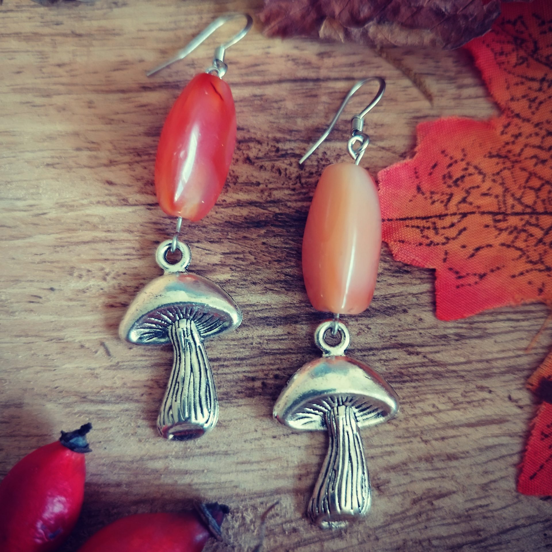 Les boucles d’oreilles Champignons transmettront toute la magie de la saison automnale, avec leurs jolies cornalines aux tons orangés.