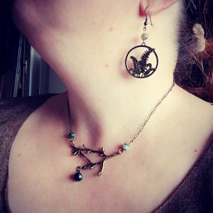 Jolies boucles d’oreilles pour les sorcières des bois, à coordonner avec le collier branche féerique