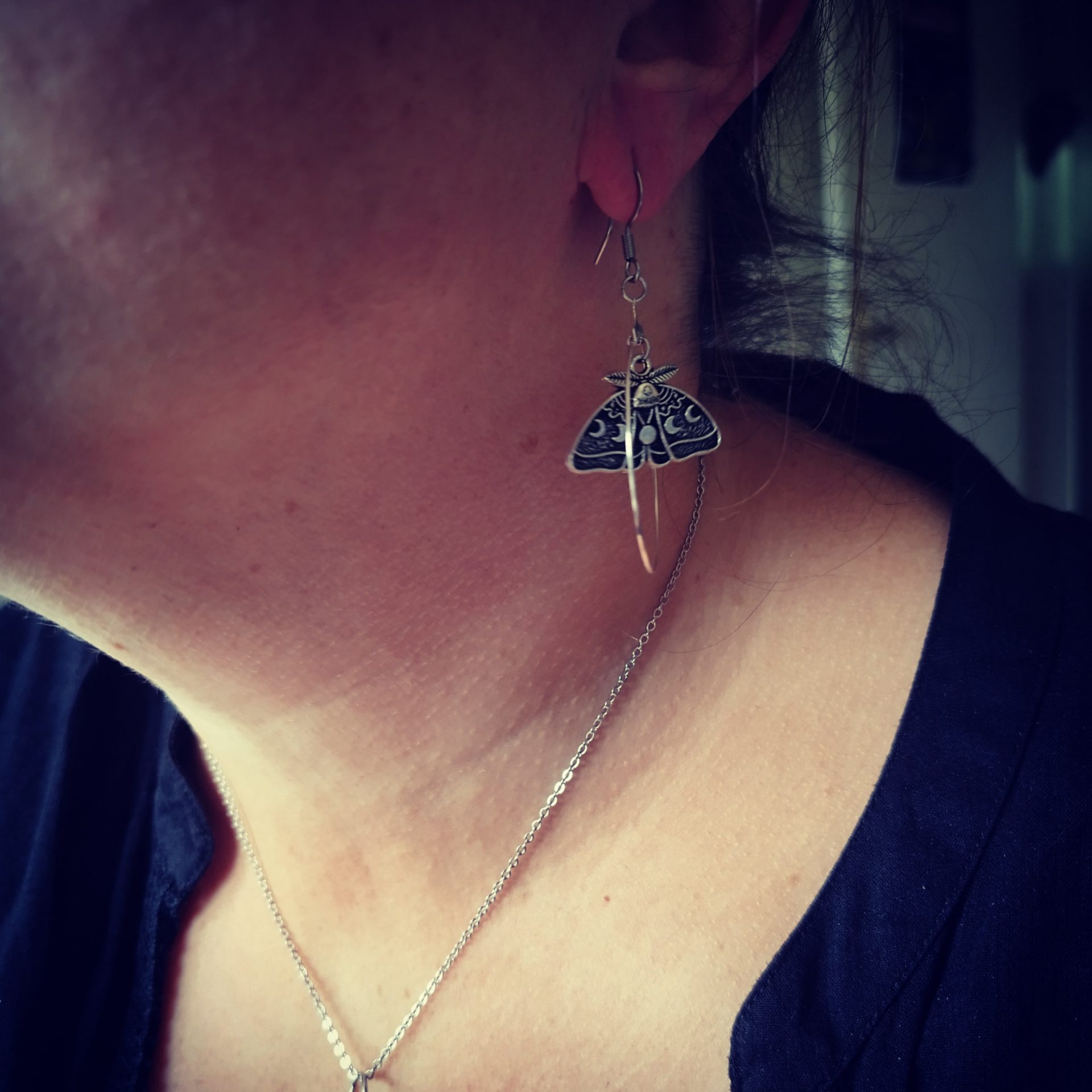 Une touche originale avec ces jolies boucles d’oreilles papillon de nuit.