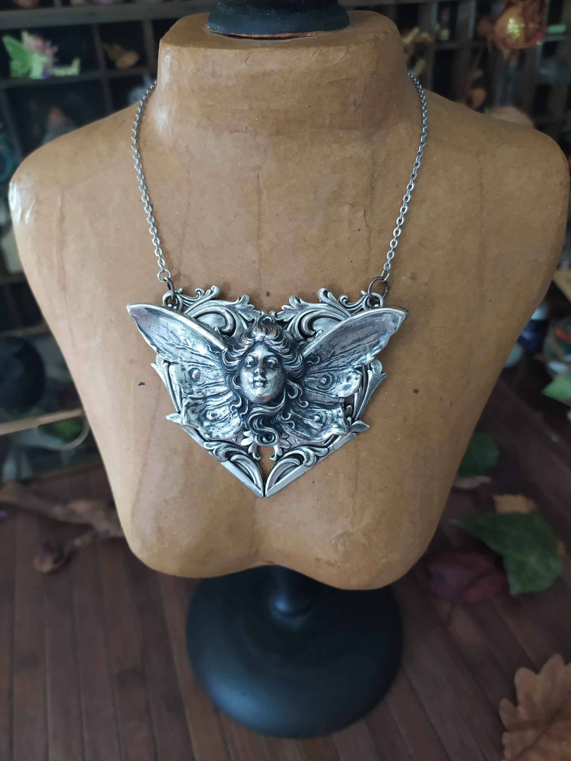 Passionnée de littérature, de contes et légendes, j’apprécie les écrits anciens et classiques. Depuis l’enfance, le féerique me fascine particulièrement, ce qui m’a inspiré ce collier de fée. J’ai également été inspirée par les adaptions graphiques liées au personnage de Titania, notamment celles d’Arthur Rackham, célèbre illustrateur de la fin XIXe-début XXe siècles, influencé par le style fantastique.