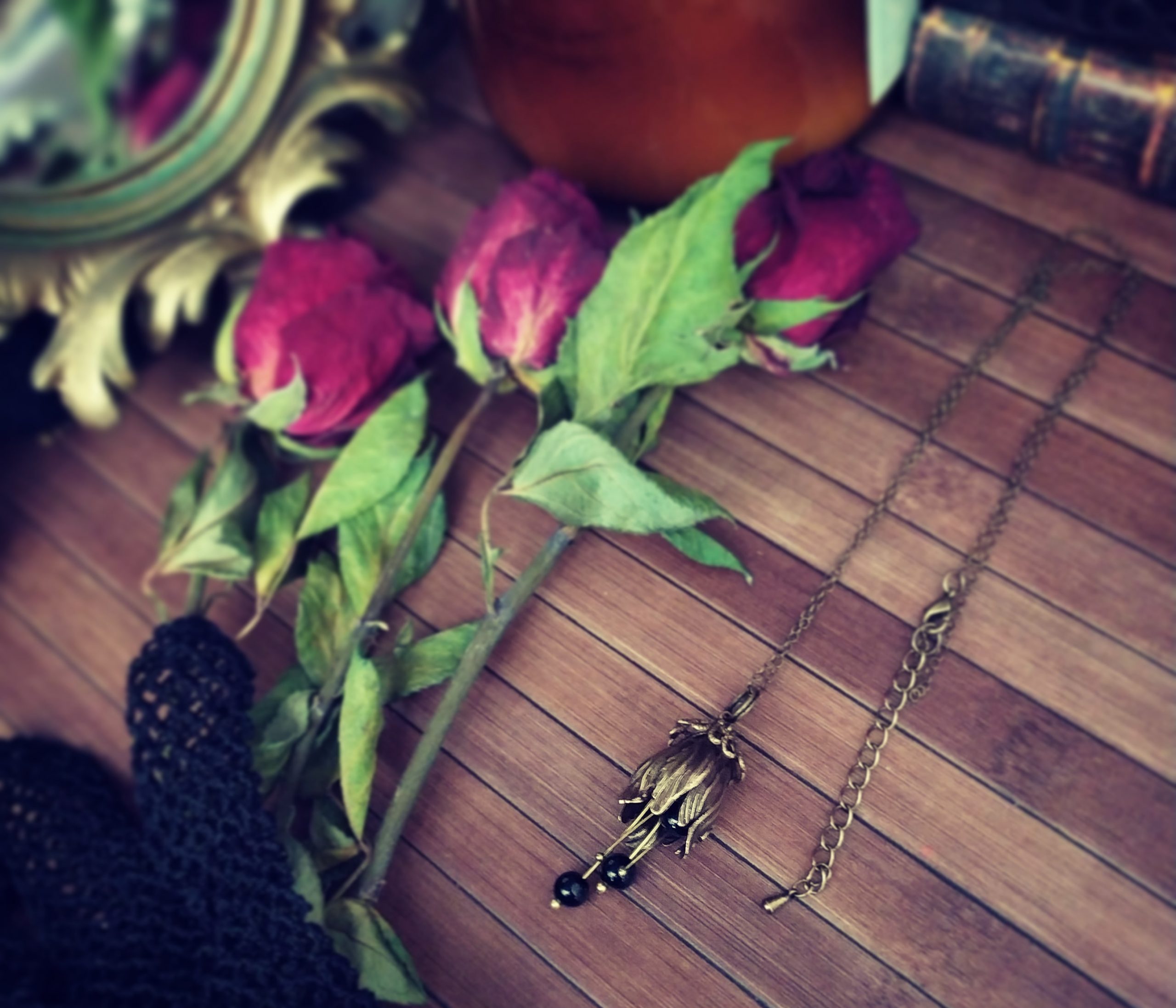 C’est en voulant allier le côté féerique et bohème du collier Fleur de Perséphone et le dark propre au style gothique, qu’est né Fleur de Nuit.