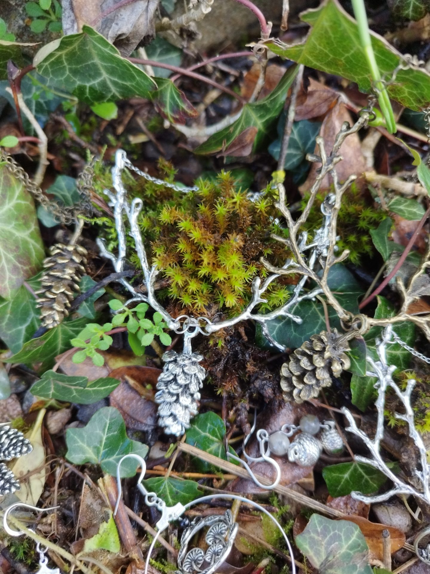 Collier pour les fées des bois, à coordonner avec les boucles d’oreilles Pommes de pin.